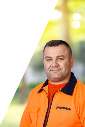 Ich sorge für saubere und sichere Straßen, Wege, Grünflächen und Spielplätze – im Sommer ist die Großkehrmaschine und im Winter der Unimog mein Arbeitsgerät. Die Arbeit in meinem Team macht mir Spaß!